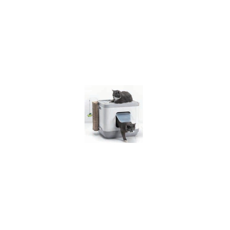 Moderna caseta per gats de 40 x 48 x 43 cm amb coixí i rascador inclòs.