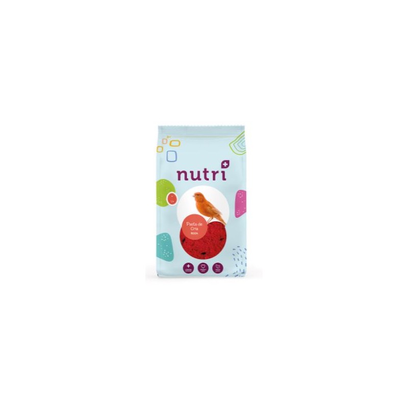 Aliment Nutriplus pasta de cria vermella per ocells compost per: cereals, productes de forn de pa, olis i greixos, subproductes d'origen vegetal, sucres, llavors, sustàncies minerals, llet i derivats làctics, ous i productes a base d'ous.