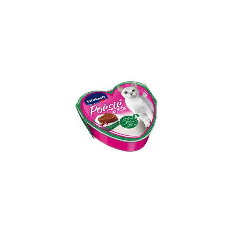 Menjar humit de 15 terrines de carn de caça, aranyons i herbes en gelatina per gats.