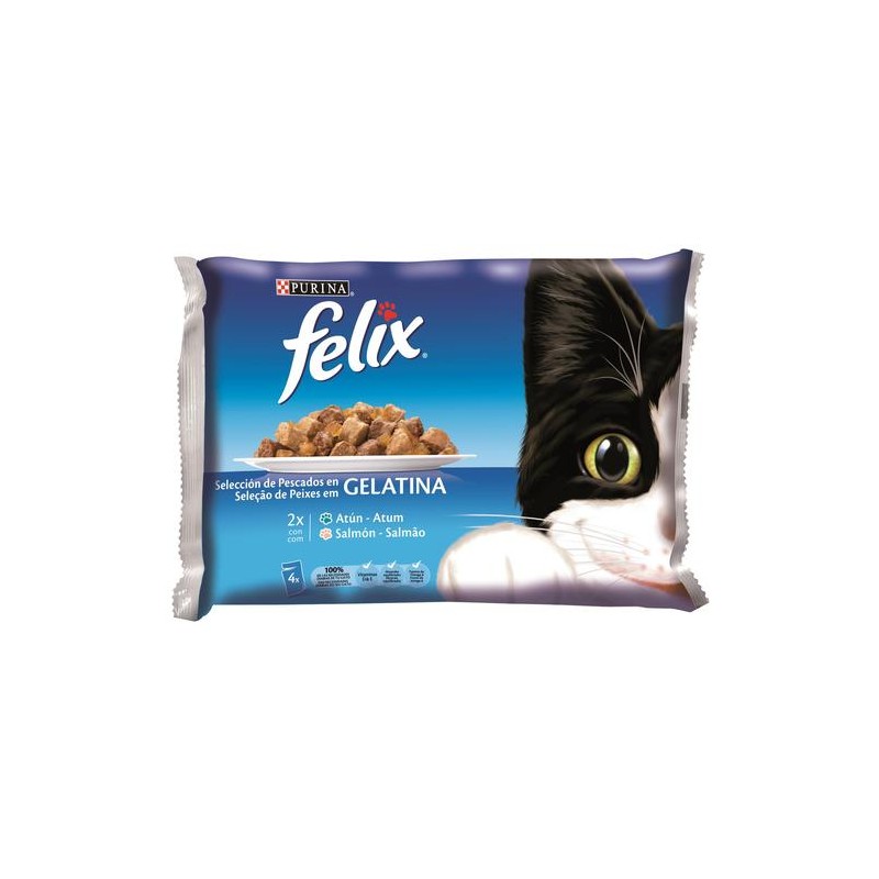 Sobres de 100 gr de peix en gelatina per tot tipus de gats.