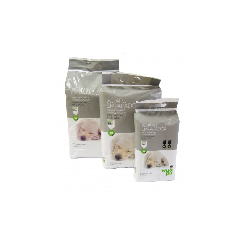 Empapadors amb gran capacitat d'absorció ideal per ensenyar els cadells a orinar on ho han de fer i per gossos senior amb incontinència. Evita taques d'orina i olors desagradables. 100% absorbents, retenen la humitat i eviten el creixament de microorganismes. Disponible en 3 mides segons la raça del gos. 15 unitats.