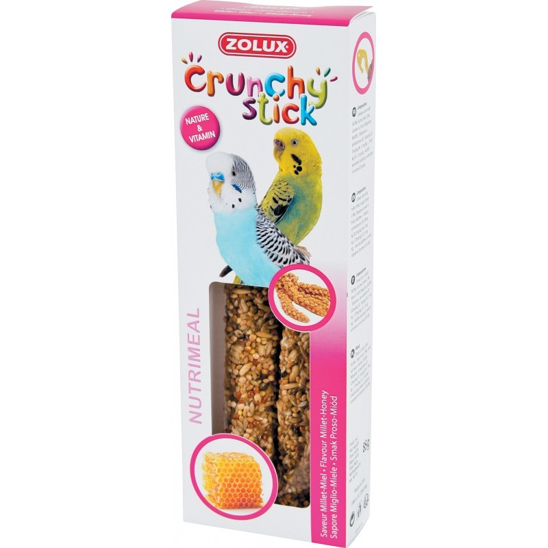 Snack de dos barretes amb ganxo envasades al buit amb mel per periquitos