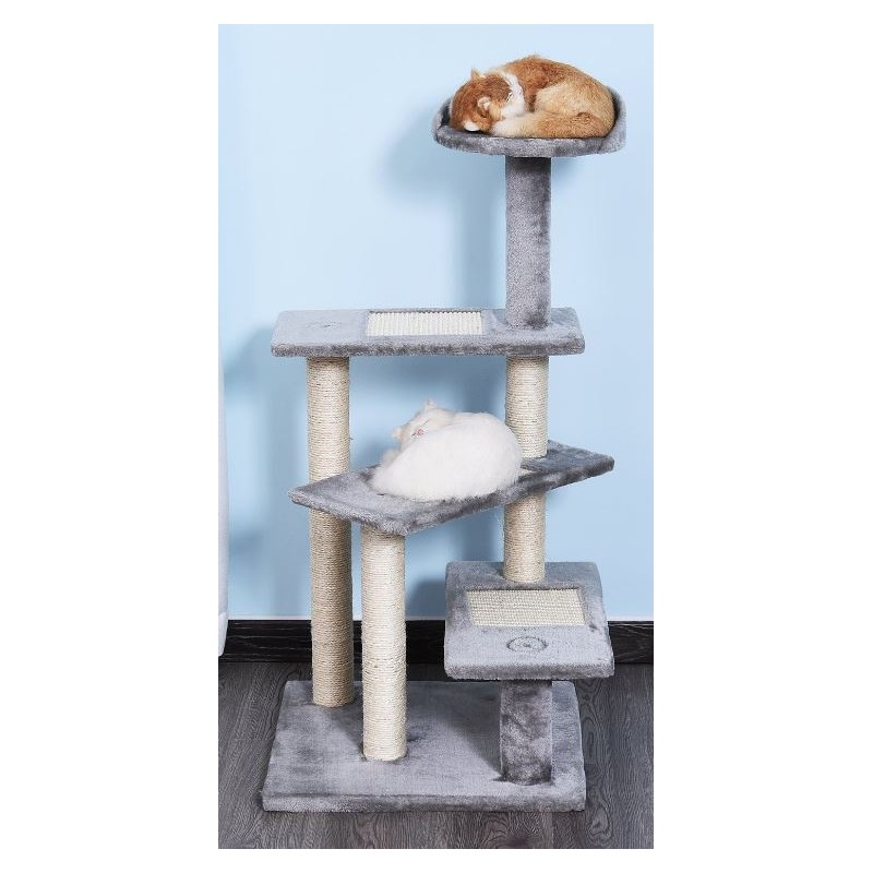 Rascador per gats de 48 x 48 x 101 cm de color gris clar i amb rascador al terra i plataforma elevada