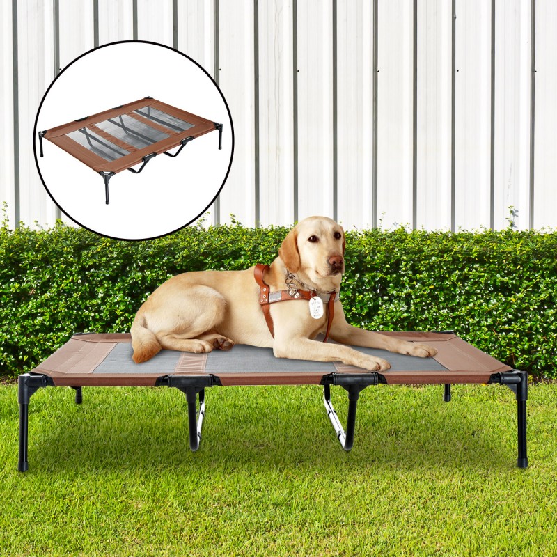 Llit elevat de color cafè de 122x92x23 cm per gossos de raça gran. Protegeix del fred i de la calor a l'estiu.