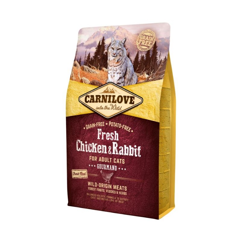 Alimentació d'alta qualitat amb productes frescos per gats adults amb pollastre i conill.
