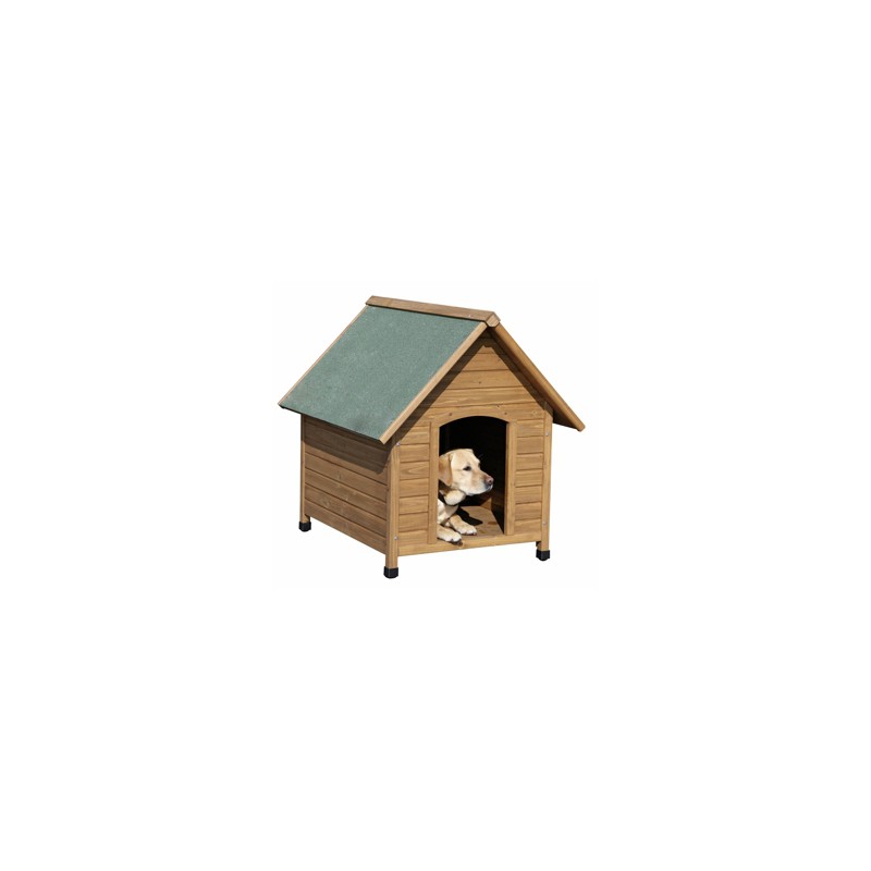 Caseta exterior de fusta per gossos grans. Amb teulada asfàltica resistent a la intemperie i potes de plàstic regulables en altura.