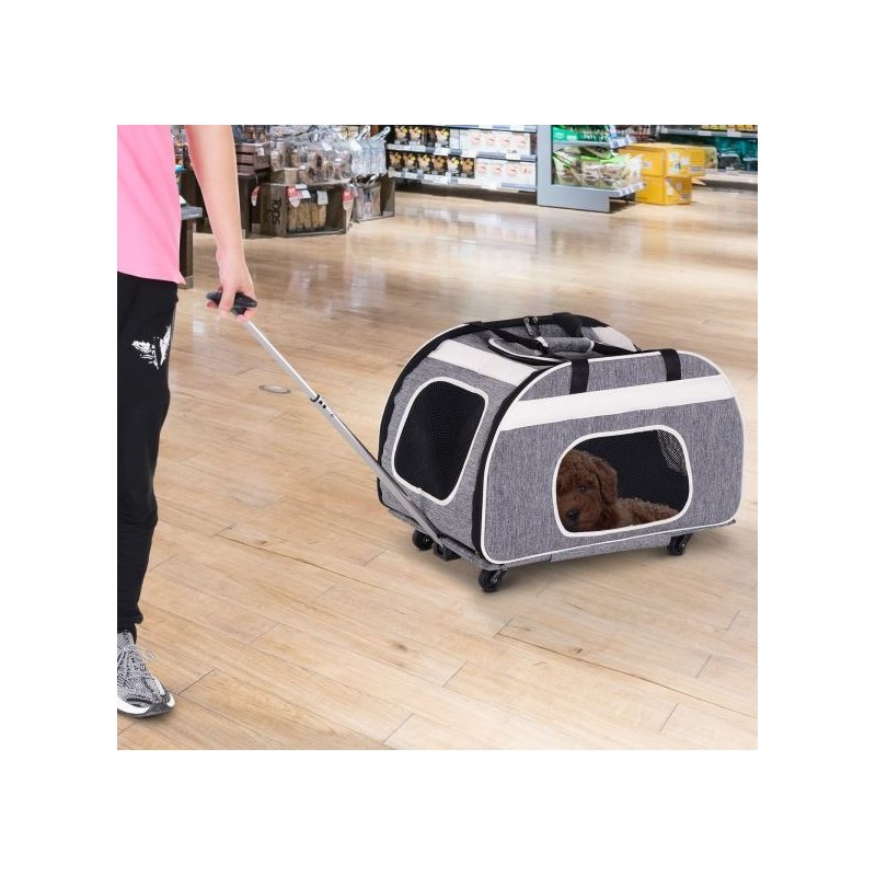Transporti per mascotes amb rodes i tirador per facilitar el transport de gats i gossos.