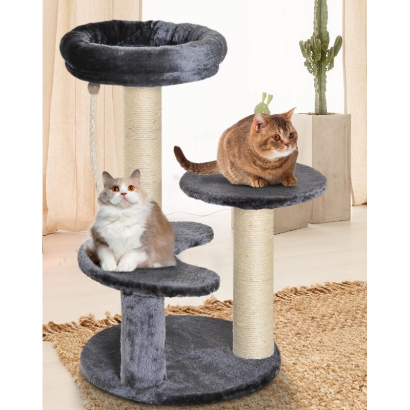 Rascador per gats amb dues plataformes i cuna per descansar.