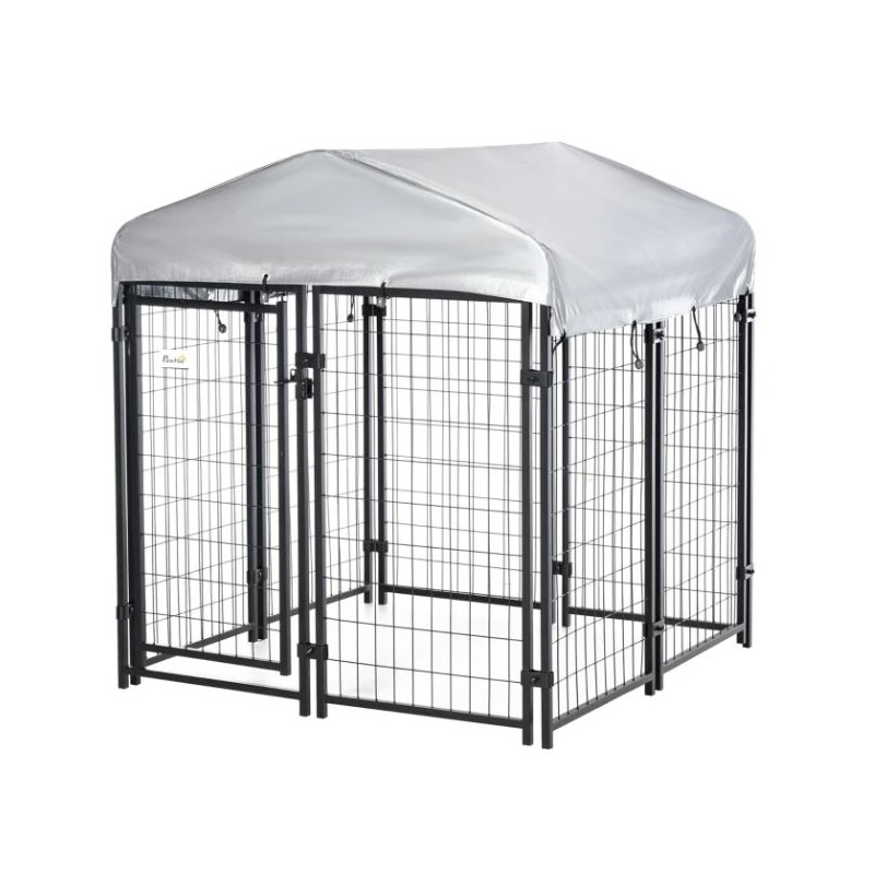 Gossera d'exterior de metall color negre amb porta amb cerradura i toldo gris plata.
