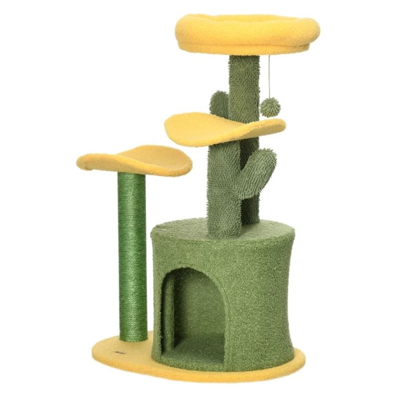 Rascador per gats en forma de columnes de cactus per rascar i cova per descansar.