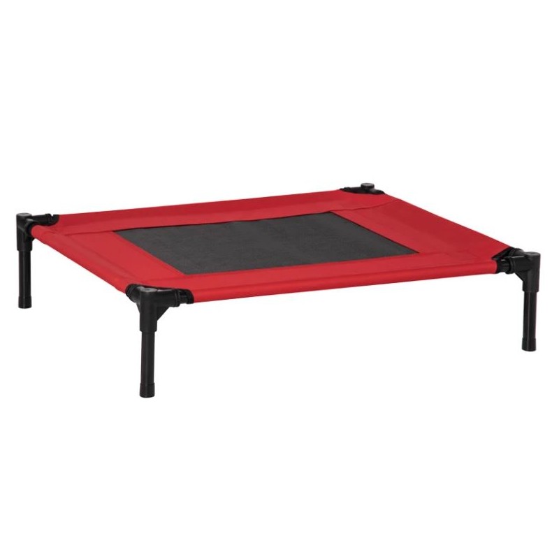 Llit elevat de color vermell de 76x61x18 cm per gossos de raça mitjana. Protegeix del fred i de la calor a l'estiu.