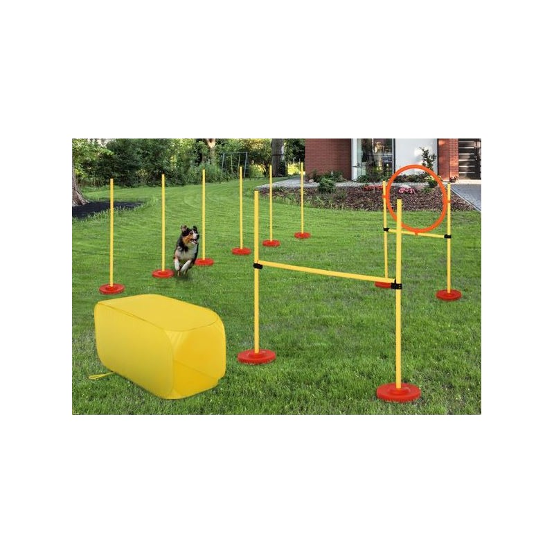 Inclou bossa de transport, 6 pals, un aro, una estructura per salt d'altura i un túnel.