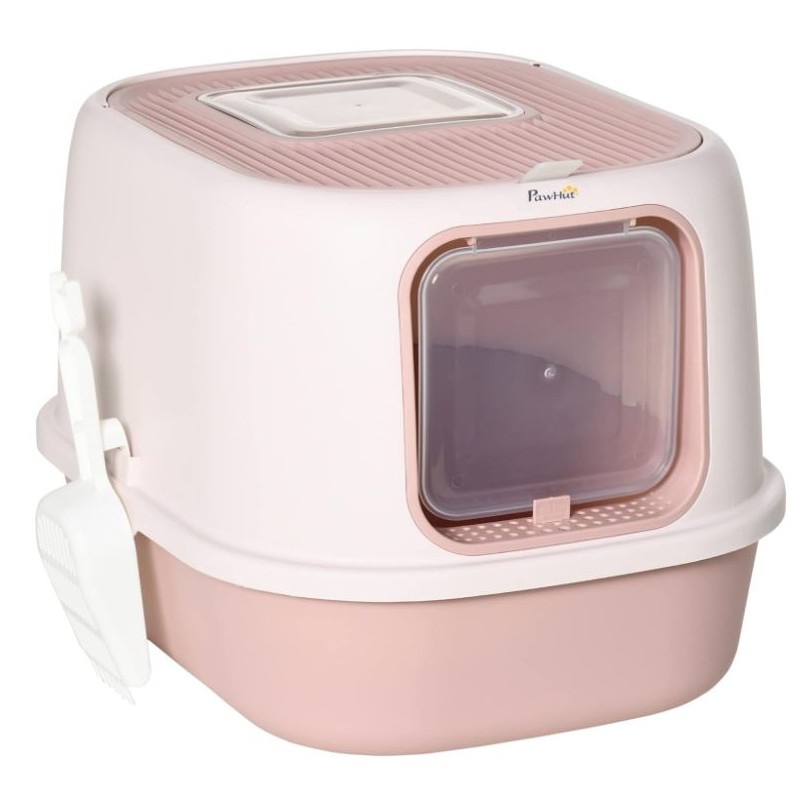 Sorrer safata wc per gats de color rosa pastel amb pala inclosa.