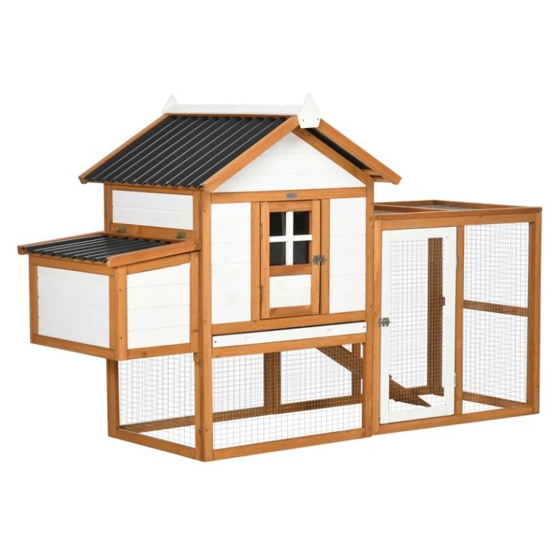 Galliner d'exterior fabricat de fusta d'avet amb sostre de tela asfàltica de color negre.