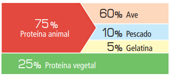 Ingredientes: Harina de carne de ave con bajo contenido en cenizas (21%); Maíz; Arroz (15%); Harina forrajera de avena; Grasa de ave; Aceite vegetal (palma, coco); Pulpa de remolacha seca, desazucarada; Huevo, secado; Harina de arenque (2,5%); Gelatina, hidrolizada (2,5%); Vainas de algarroba, secas (2,5%); Levadura de cerveza, secada; Semillas de chía; Semillas de lino; Fosfato dicálcico; Hígado de ave, hidrolizado; Cloruro de sodio; Cloruro de potasio