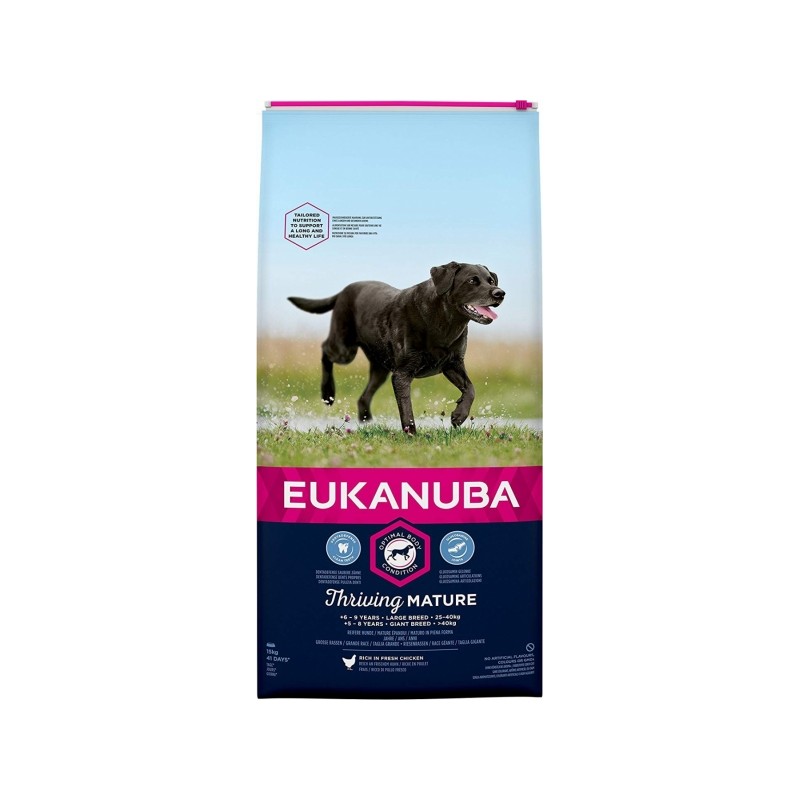 Alimentación de alta calidad para perros seniors de razas grandes.