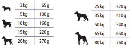 Ingredientes: Arroz; Harina de carne de ave con bajo contenido en cenizas (15%); Harina forrajera de avena; Fécula de patata (12%); Harina de arenque (2,5%); Gelatina, hidrolizada (2,5%); Harina de huesos de uva; Levadura de cerveza, secada; Grasa de ave; Aceite vegetal (palma, coco); Vainas de algarroba, secas; Pulpa de remolacha seca, desazucarada; Salvado de avena; Semillas de chía; Semillas de lino; Hígado de ave, hidrolizado; Fosfato dicálcico; Cloruro de sodio; Cloruro de potasio; Hierbas, secadas (en total 0,2%: hojas de ortiga, raíz de genciana, centaura menor, manzanilla, hinojo, alcaravea, muérdago, aquilea, hojas de zarzamora); Yucca schidigera