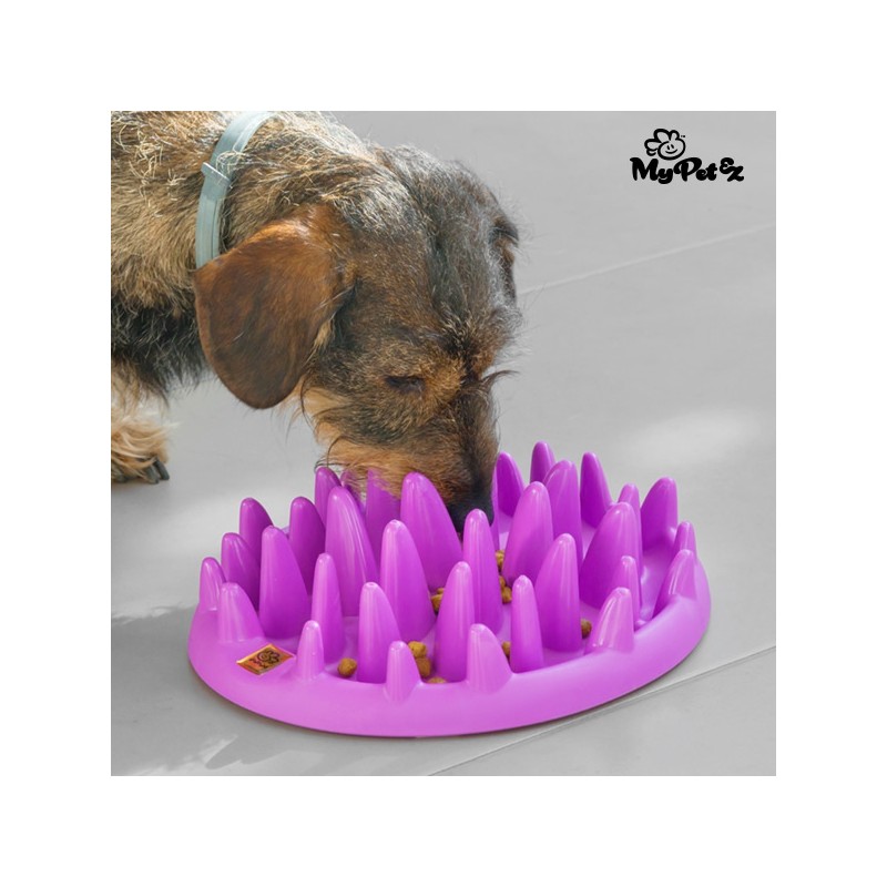 Comedero lento para gatos y perros que facilita la digestión y les obliga a comer mas despacio. Antivuelco y con base antideslizante.