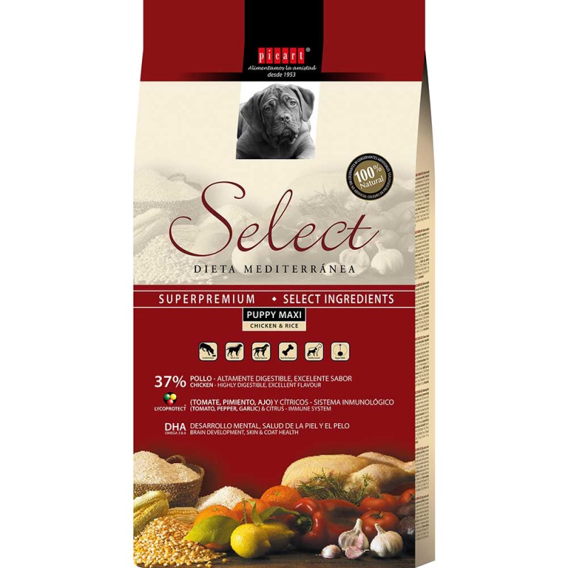 Alimento completo con pollo y arroz para cachorros de razas grandes