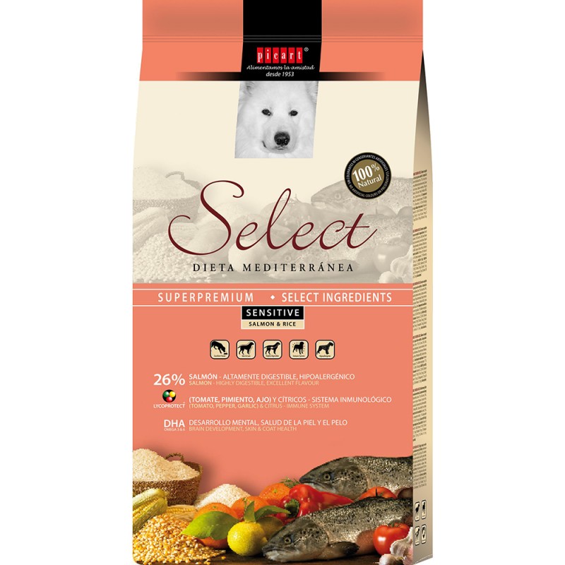 Alimento completo con salmón y arroz para perros adultos con sensibilidad alimentaria