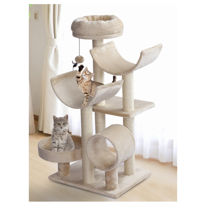 Rascador para gatos de color beig con hamacas y cestas muy resistente y estable