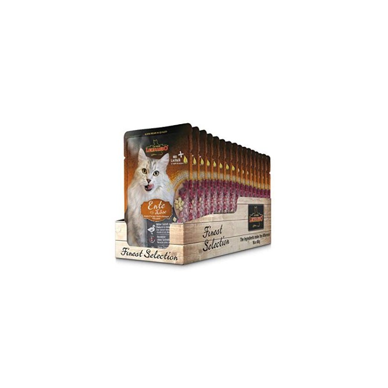 Comida húmeda de 16 sobres de 85gr para gatos con pato y queso.