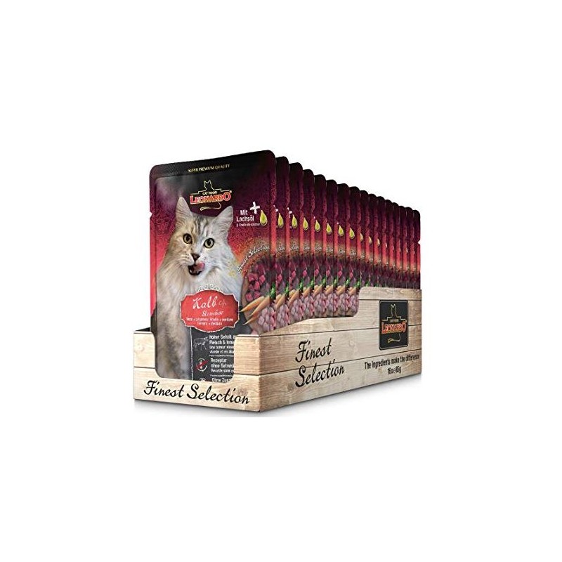 Comida húmeda de 16 sobres de 85gr para gatos con ternera y legumbres.
