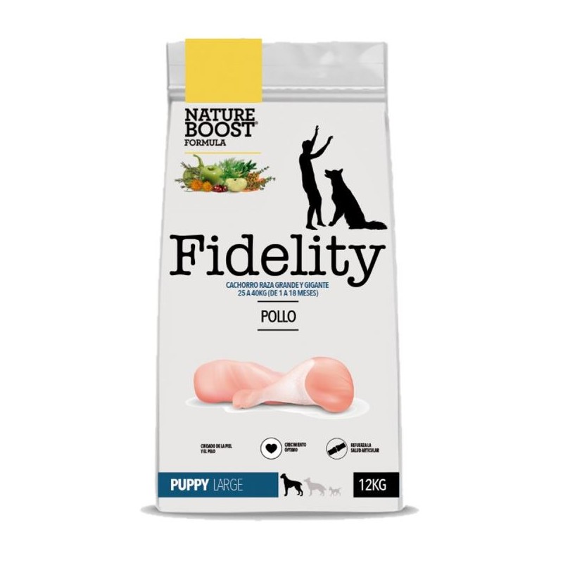 Pienso para perros cachorros de raza grande de alta calidad con ingredientes sin glúten y con pollo.