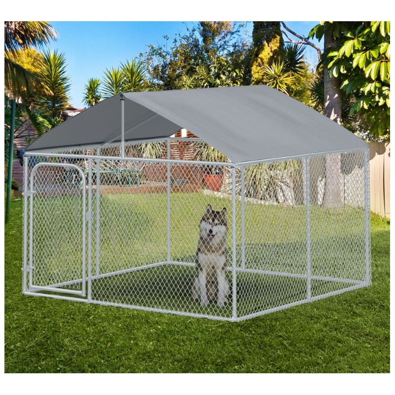 Recinto perrera de exterior de metal galvanizado para mascotas.