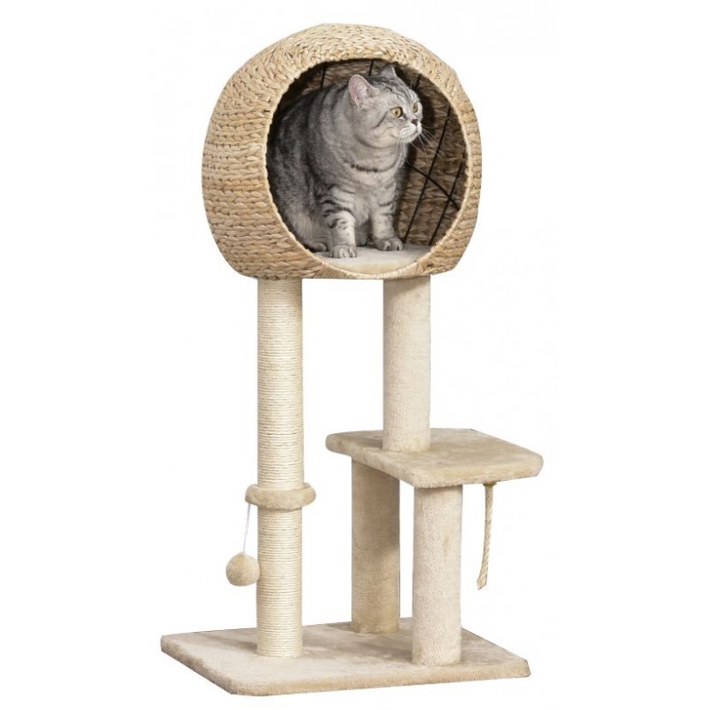 Rascador para gatos con torre para escalar hasta la cueva con cama para descansar.