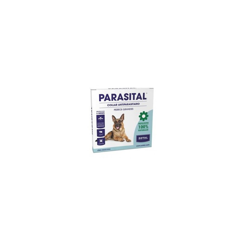 Collar antiparasitário para perros de razas grandes. 100% natural. Evita reacciones alérgicas ya que contiene aceites naturales. Protección 3 meses contra pulgas, garrapatas y mosquito leishmaniasis.