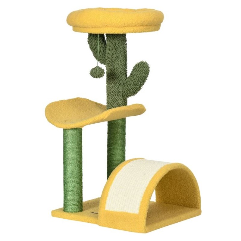 Rascador per gats en forma de cactus amb hamaca i columnes per rascar.