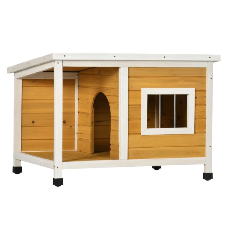 Caseta de exterior de madera para perros de raza mediana.