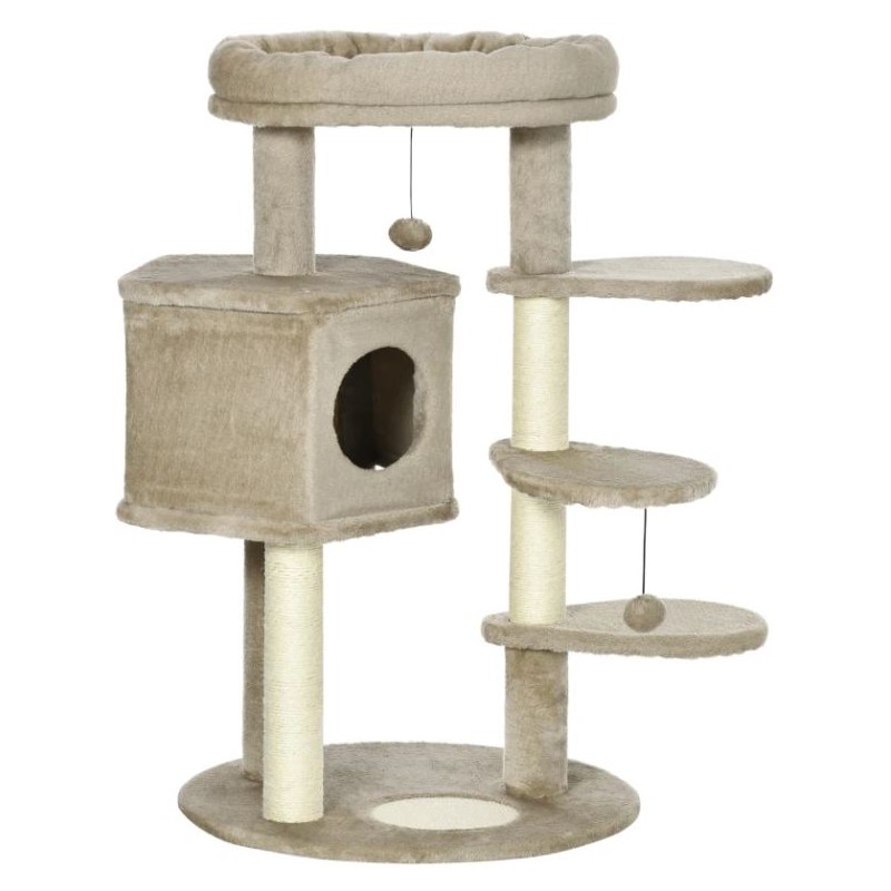 Rascador para gatos de 94 cm de alto con diferentes plataformas para gatos.