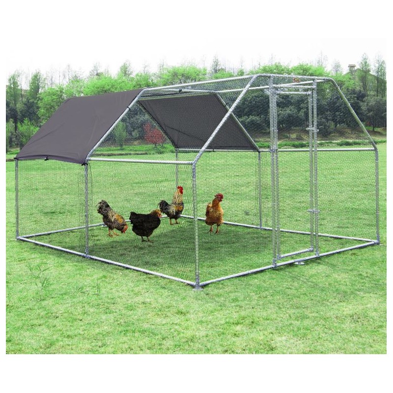 Gallinero de exterior fabricado de metal galvanizado con malla de protección y cubierta oxford.