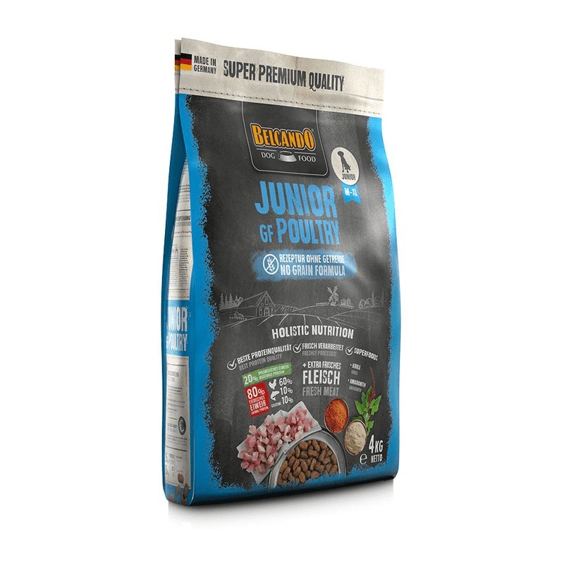 Alimentación especial sin cereales para perros jovenes a partir de los 4 meses de edat de raza mediana y grande con aves de corral.