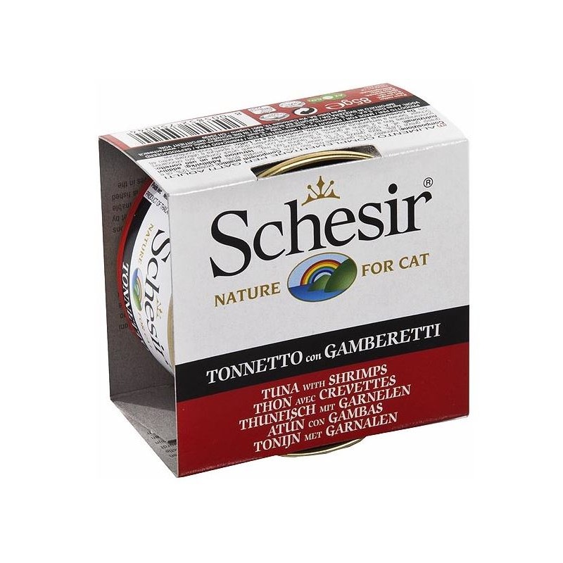 Alimentación húmeda para gatos de atún con gambas.